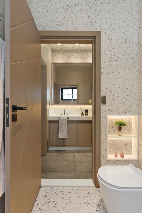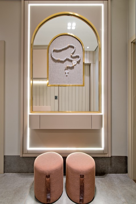 Cada detalhe, desde o escritório até o oratório, traduz o conceito que buscávamos: uma casa com alma e propósito.